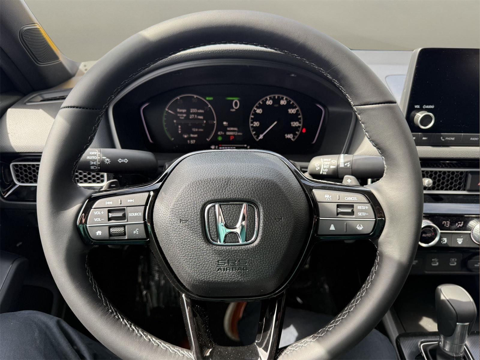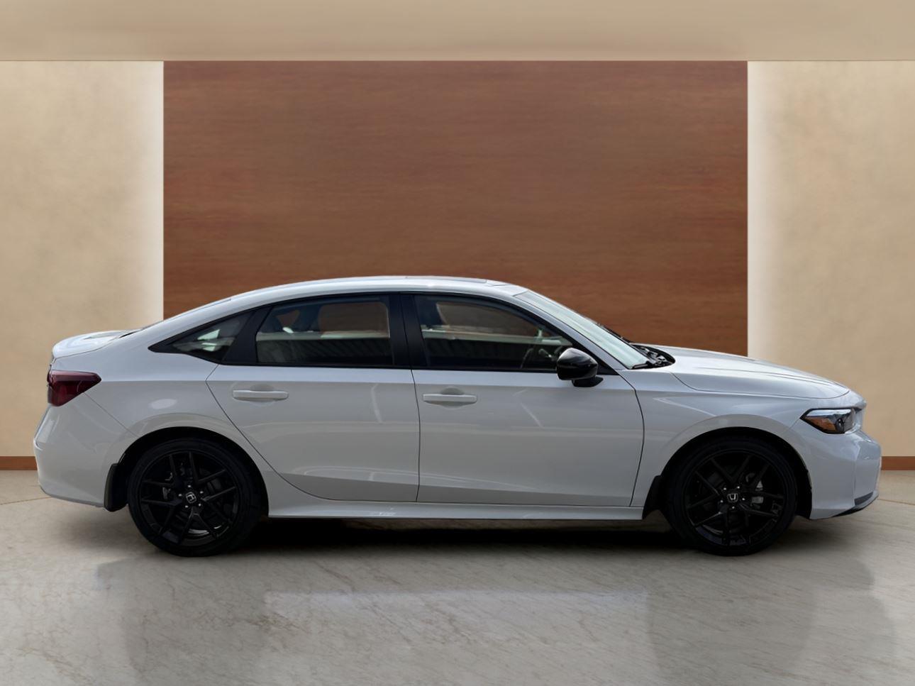 This 2026 Honda Civic Sedan Hybrid Sport Platinum White Pearl with CRYSTAL BLACK PEARL interior has 12 miles.