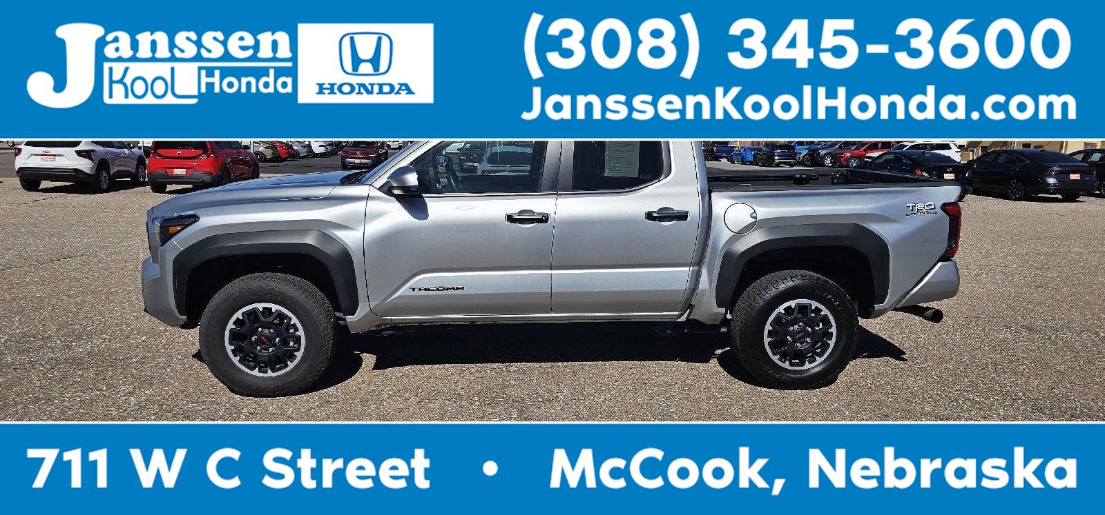 Welcome to Janssen Kool Honda! Great Choice on this 2024 TOYOTA TACOMA TRD Off-Road with SILVER Exterior and interior.